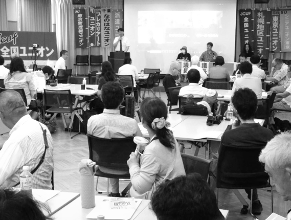 終了後は、余るほどの料理を食べ、飲み、懇親会が行われる。首都圏傘下の各ユニオンからの活動報告も行われ、13時から開始された大会、シンポジウム、懇親会が20時をもって閉会に。