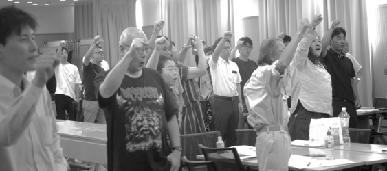 すべての議案が採択され、「闘う労働運動の大同団結を進め、1万人の全国ユニオンをめざし、それぞれの職場から見えてきた課題に取り組み、今こそディセントワークを実現させよう。」との大会宣言が行われ、関口事務局長の音頭で団結ガンバローを三唱し、大会は終了。なのはなからは8名が参加。